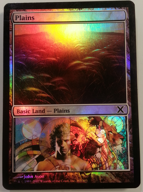 I've continued using the method outlined in the previous post to alter lands for use in my cube. It's surprisingly fun once you spot the right cards, and my local game store sells less popular foil commons and uncommons for 25 and 50 cents respectively, making each land a relatively small investment. If anyone has suggestions for good pairings, or of non-land cards that would look good with something layered on top of them, I'm open to suggestions. I've got a handful of others lined up, but time is the limiting resource these days.